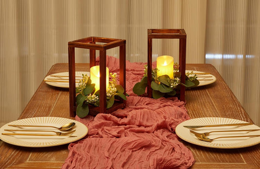 12 Set Wooden Wedding Lantern Centerpiece, Lantern Candle Holder for Farmhouse Candle Lantern for Table Fireplace, Perfect for Table Decoration & Country Barn Weddings(No Candles & Flowers)